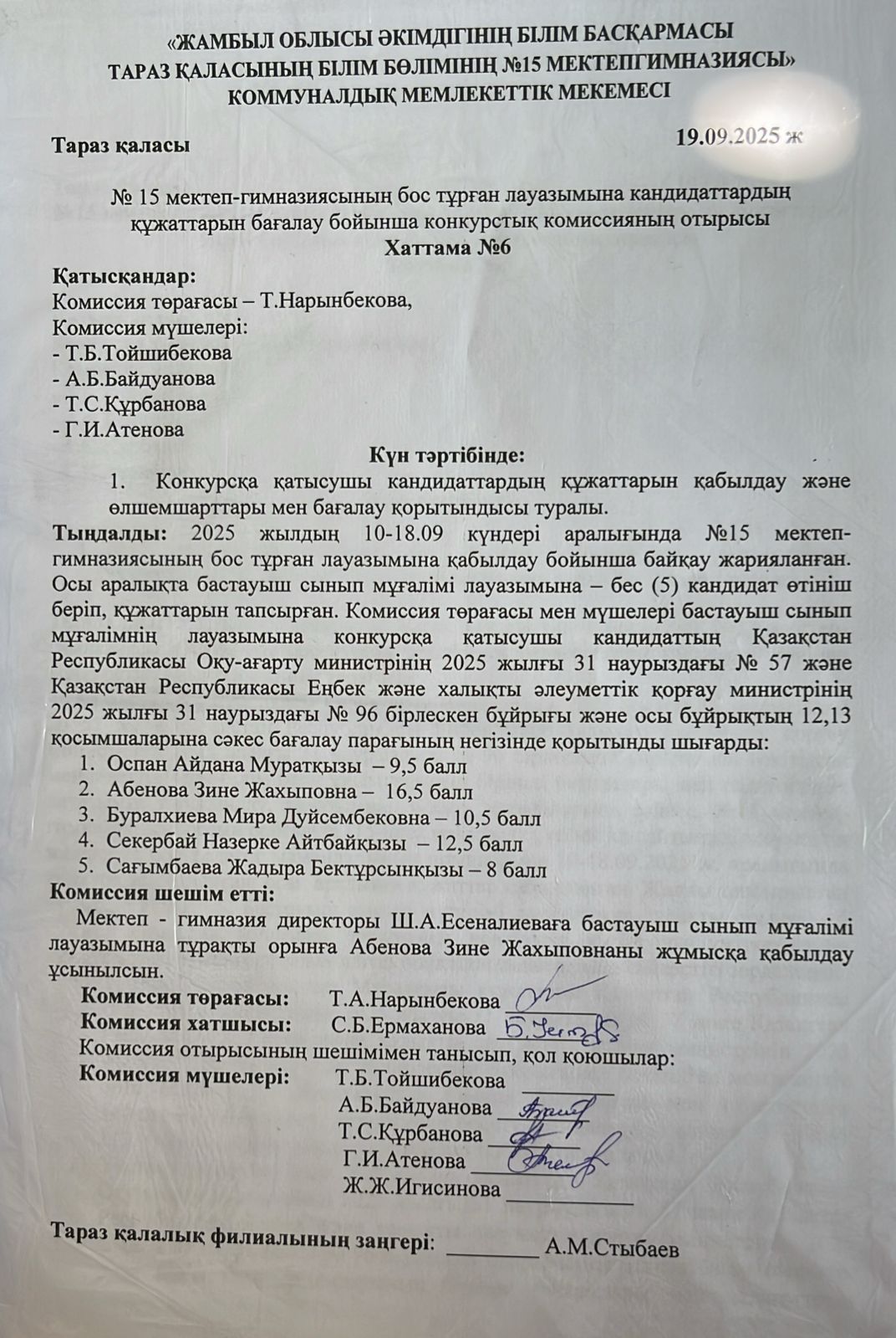 Конкурс отырысының шешімі » Школа Гимазия №15