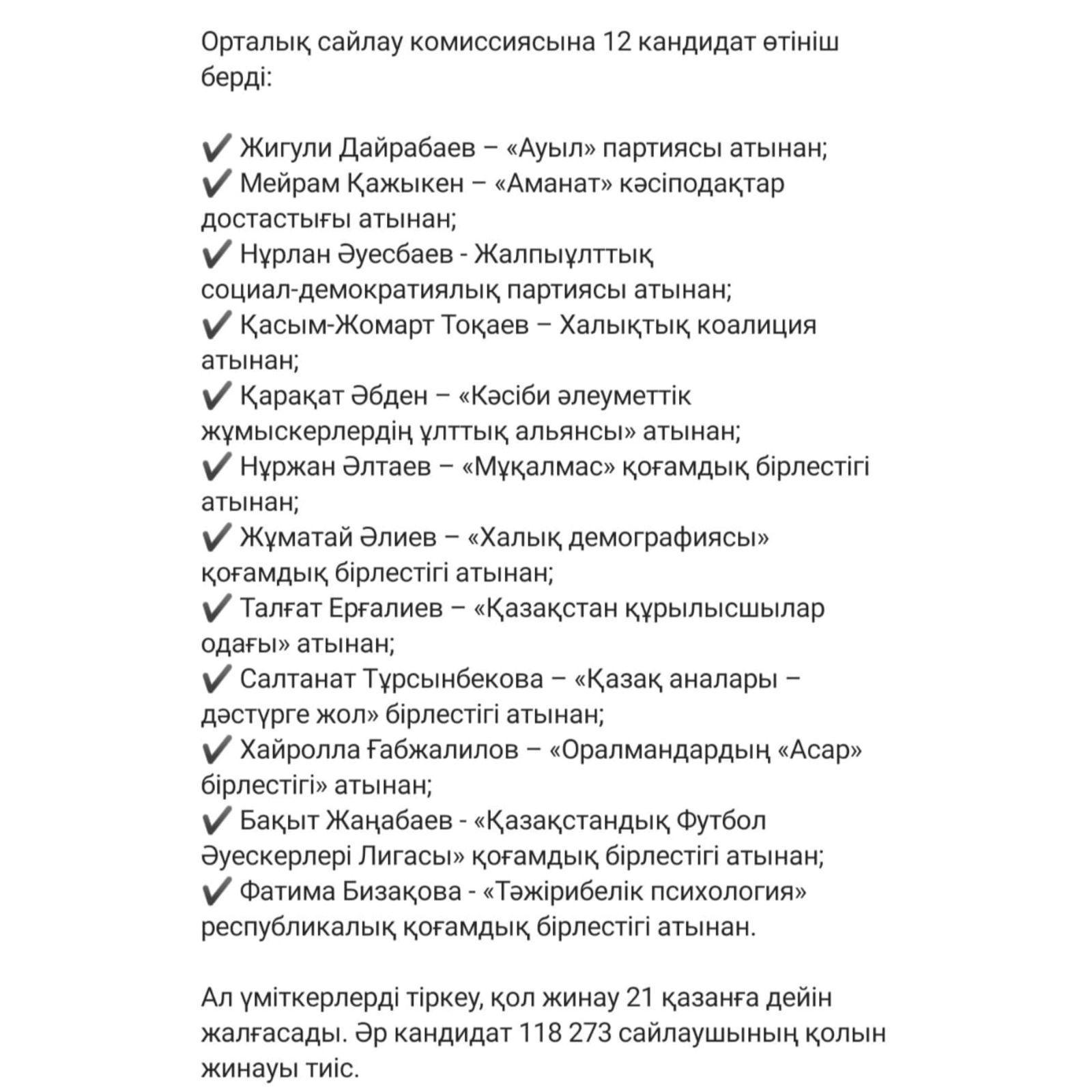 ПРЕЗИДЕНТ САЙЛАУЫНА ҰСЫНЫЛҒАН КАНДИДАТТАР